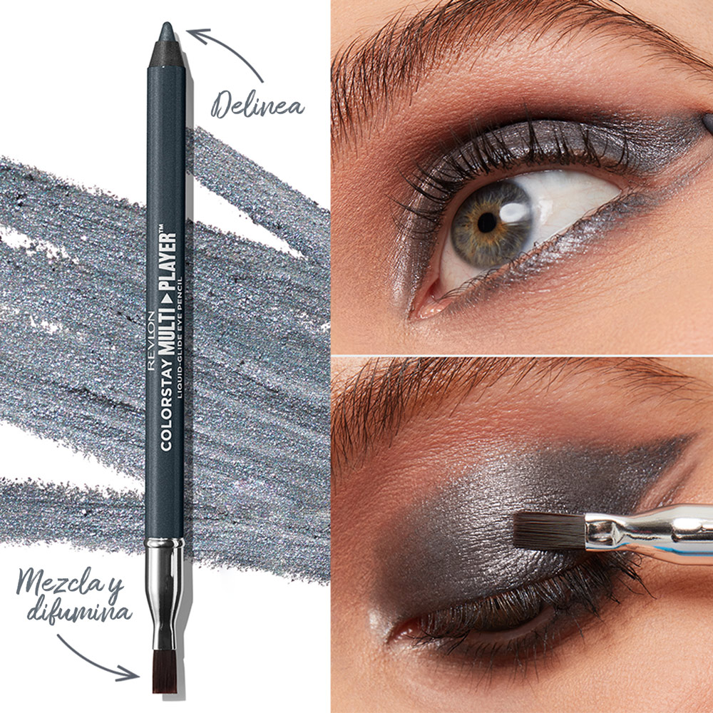 Revlon Delineador de ojos colorstay Multiplayer, facil de difuminar, resistenete al agua, vegano, con textura suave y cremosa. Crea infinitas miradas con este lápiz que se puede usar durante todo el día. La fórmula versátil tiene un deslizamiento similar al líquido y una textura cremosa que te brinda la cantidad justa para delinear, mezclar y difundir antes de que s Modo de uso De fácil aplicación, para un look sutil, puedes aplicarlo ligeramente por el nacimiento de las pestañas o difuminarlo para crear un maquillaje ahumado.