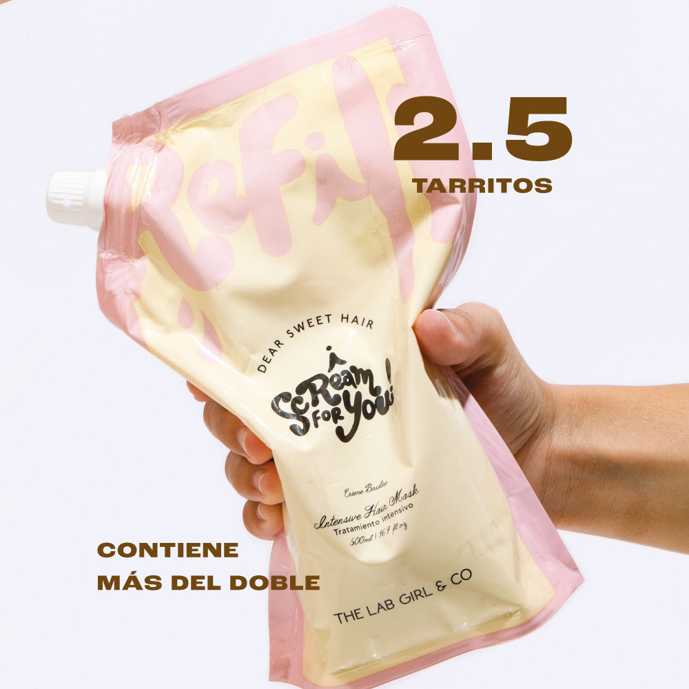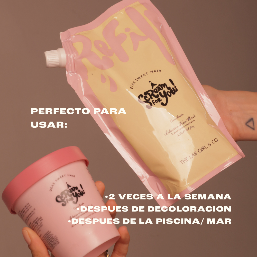 Repuesto del Tratamiento Capilar Intensivo Le devuelve la hidratación y el brillo al pelo desde el primer uso. Repuesto del Tratamiento Capilar Intensivo Le devuelve la hidratación y el brillo al pelo desde el primer uso. Con esta presentación ahorras dinero y extiendes la vida del tarrito rosado. Modo de uso Úsalo para volver a llenar tu tarrito rosado. Aplícalo en pelo seco o húmedo, déjalo actuar de 10min hasta 4 horas. Siempre se debe lavar!