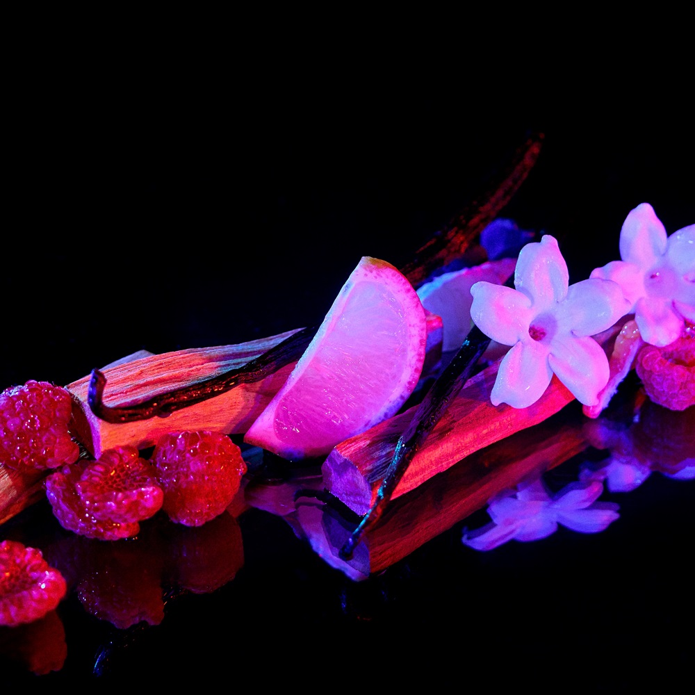 Notas de salida: Bergamota, Frambuesa. Notas de corazón: Jazmín Sambac, Lirio, Aceite De Neroli. Notas de fondo: Sándalo, Vainilla, Abeto Balsámico.