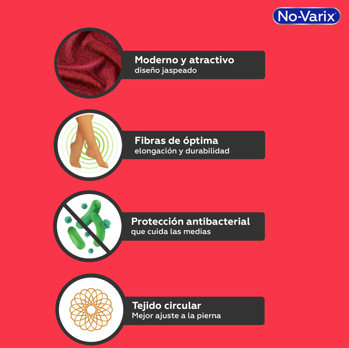 Fibras de excelente elongación, recuperación y durabilidad garantizando constante compresión