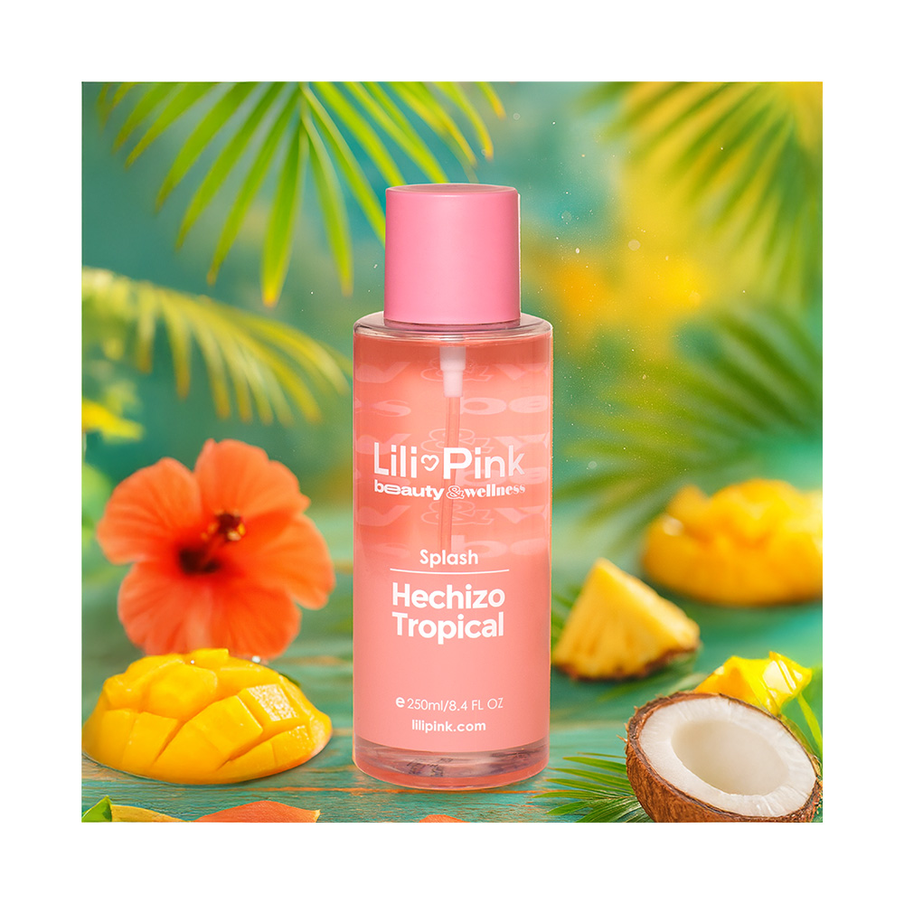 Splash corporal de 250ml,perfecto para el día a día. Libre de parabenos, sin siliconas, sin sulfatos y sin crueldad animal. Fragancia Hechizo TropicalOriental Divertida El body splash Hechizo Tropical te transporta a un paraíso exótico con sus notas frutales y tropicales. Su fragancia vibrante es ideal para quienes buscan un aroma alegre y refrescante, perfecto para días cálidos o actividades al aire libre. Modo de uso Rocía el body splash directamente sobre la piel, manteniendo una distancia de aproximadamente 15 cm. Puedes aplicarlo en el cuello, las muecas y detrás de las orejas, o en todo el cuerpo para refrescar y perfumar la piel. Úsalo cuantas veces des