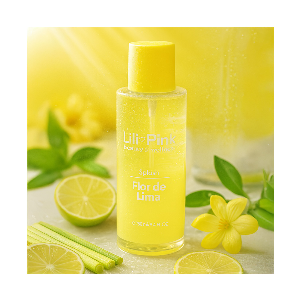 Splash corporal de 250ml, perfecto para el día a día. Libre de parabenos, sin siliconas, sin sulfatos y sin crueldad animal. Fragancia Flor de Lima Cítrica Floral. El body splash Flor de Lima es la opción perfecta para quienes buscan un aroma fresco y revitalizante. Su mezcla cítrica y floral despierta los sentidos, dejando una sensación energizante en la piel. Ideal para empezar el día con actitud renovada. Modo de uso Rocía el body splash directamente sobre la piel, manteniendo una distancia de aproximadamente 15 cm. Puedes aplicarlo en el cuello, las muecas y detrás de las orejas, o en todo el cuerpo para refrescar y perfumar la piel. Úsalo cuantas veces des