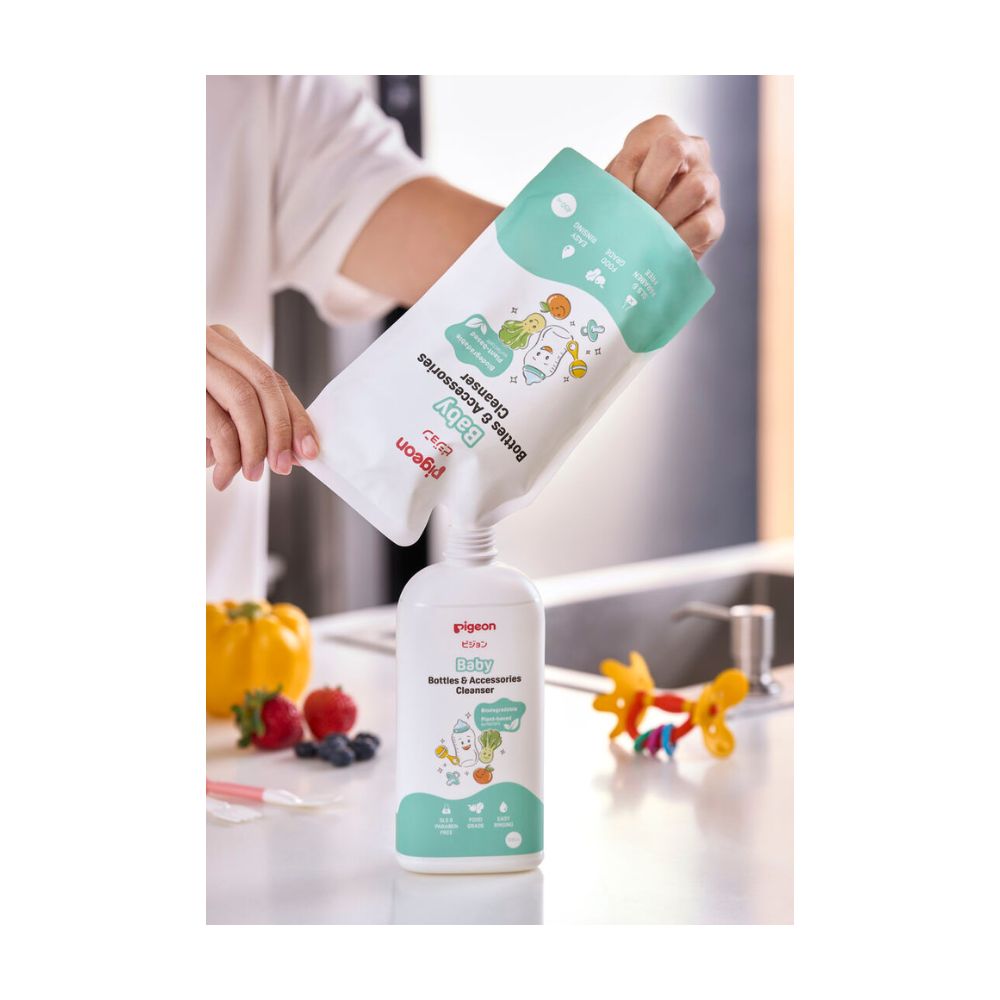 Los teteros, tetinas, accesorios para bebés, frutas y verduras, se pueden limpiar a profundidad con el limpiador líquido Pigeon. Está elaborado a base de ingredientes 100 de grado alimenticio y elimina el 99 de las bacterias el limpiador líquido de teteros y accesorios Pigeon limpia a profundidad incluido los restos de leche. Su fórmula, desarrollada en Japón, está elaborado a base de ingredientes 100 de grado alimenticio y elimina el 99 de las bacterias.