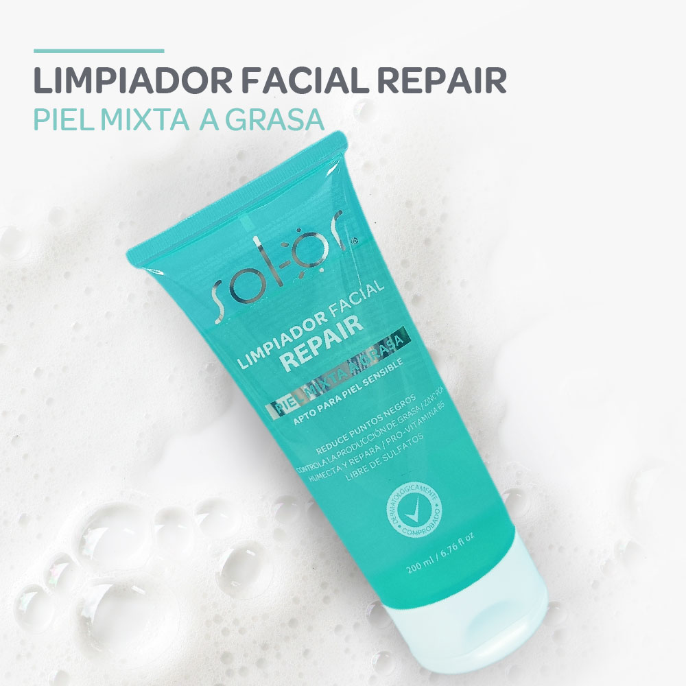 Limpiador Facial Repair Solor Para Piel Mixta A Grasa Tubo X 200 Ml