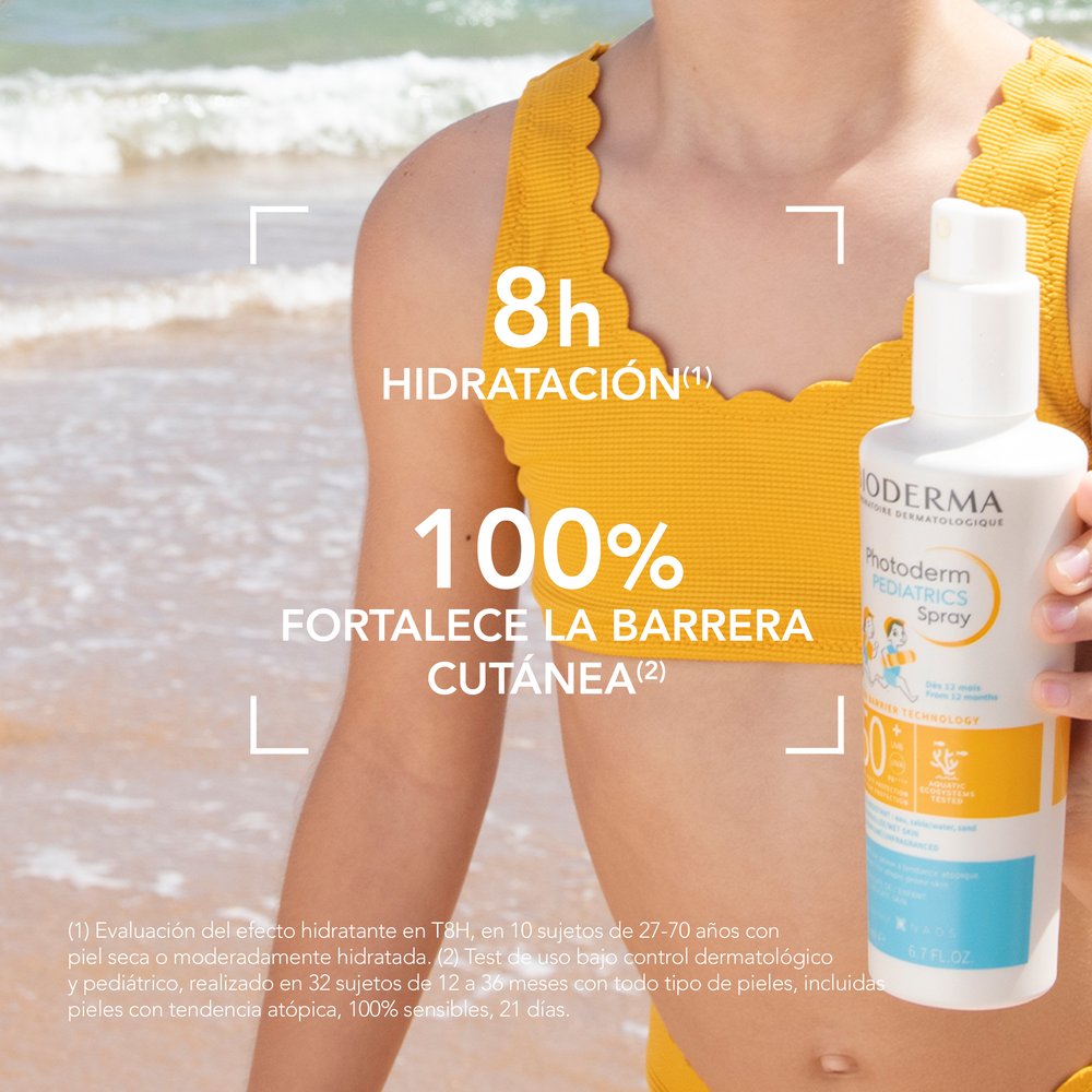 Protector solar único en el mercado apto para bebés de 6 meses en adelante y niños, dejando una piel más hidratada Protector solar apto para la delicada piel de los bebés y niños, piel más hidratada, Photoderm PEDIATRICS Spray cuenta con 4 filtros máximos, en los cuáles BIO protege y refuerza la delicada piel de los niños en lugar de sobrecargarlos con fi Modo de uso "Aplicar sobre la piel húmeda o seca, una cantidad generosa antes de la exposición solar. Difundir el producto en las manos antes de aplicar en el rostro. Repetir aplicación cada 2 a 4 horas o después de ducharse, nadar o secarse con la toall