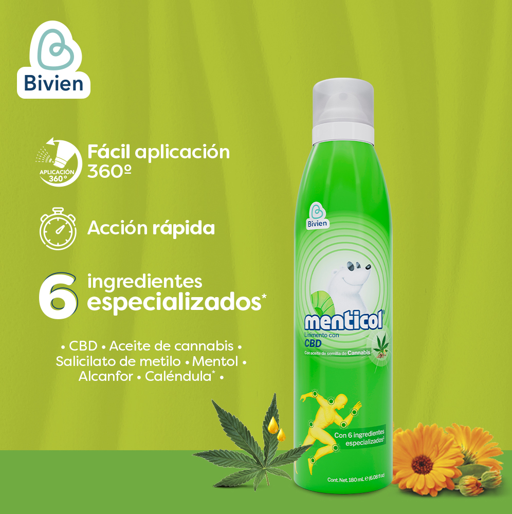Características de la Loción Menticol Linimento con CDB Bivien Spray x 180 ml