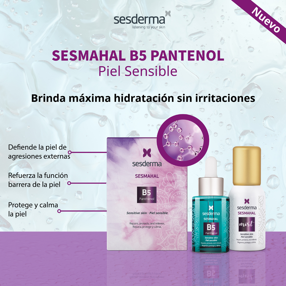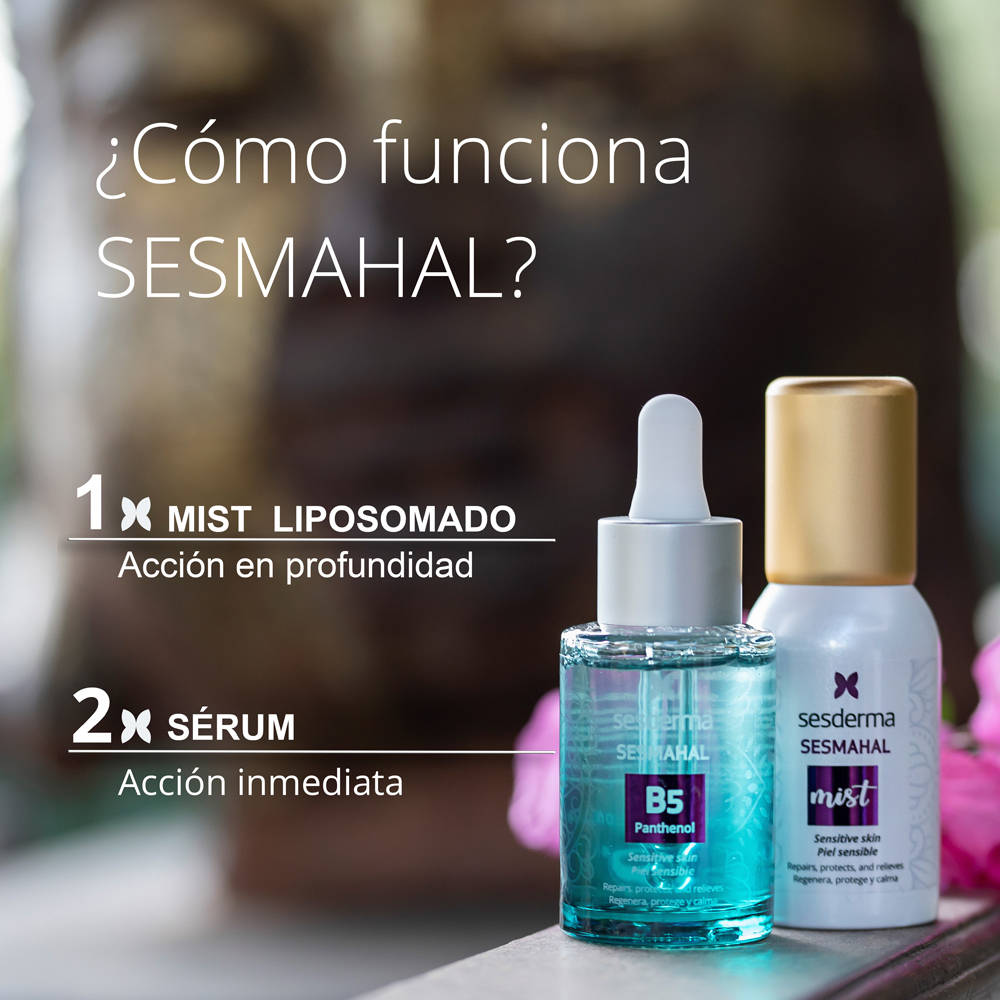 - El Sesmahal B5 es nuestro gran descubrimiento para reforzar la función barrera de la piel. Gracias a su sistema bifase reparador y regenerador, conseguirás una hidratación máxima en tu rostro, aportando un toque extra de suavidad y elasticidad.